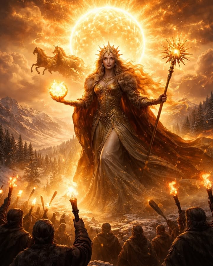 Oración a Sunna, Décimo Día de Yule Sunna, Señora del disco ardiente, ojo dorado que nunca parpadea, en este décimo